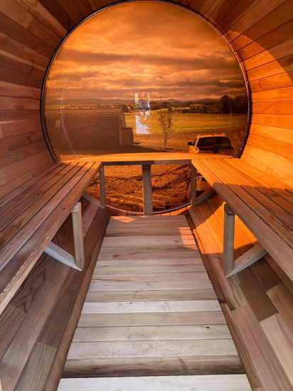 The barrel saunas are made of a-quality western red cedar wood. This type of wood provides a wonderful scent in the sauna and has a beautiful and warm appearance.